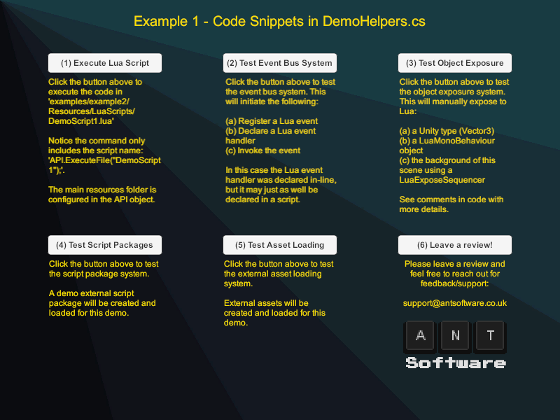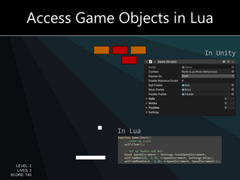 It works by setting up a scene-wide Lua environment and exposing game objects to it. Objects exposed to the Lua context can then be accessed in Lua scripts, allowing users to interact with Unity Engine at runtime.
